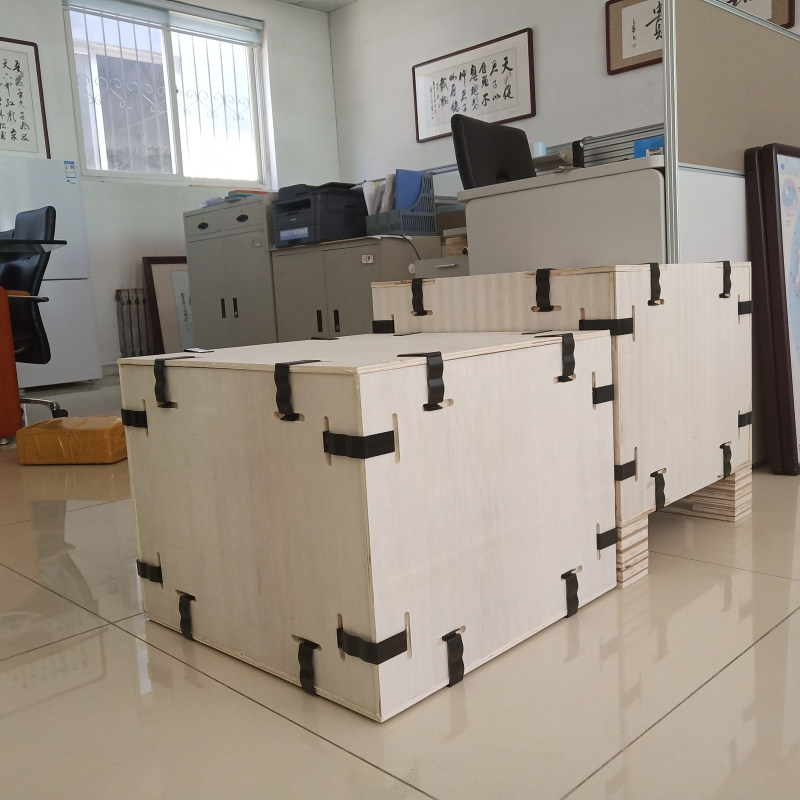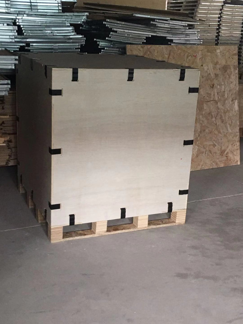卡扣式木包裝箱全部采用高強度OSB板,箱體由高強度的金屬制件連接而成,其原理是箱體整體受力,無論是組裝還是運輸,都不會出現(xiàn)松動現(xiàn)象,同時避免漏釘、露釘、少釘、工藝粗糙、灰塵、雨淋、結構處理不當、運輸途中箱體碰撞造成的散架等問題;保障了產品的安全性,保證了客戶收貨時的完整性,同時由于是無釘化作業(yè),確保了現(xiàn)場包裝人員的安全。同材質條件下,卡扣箱性能超過傳統(tǒng)木箱。